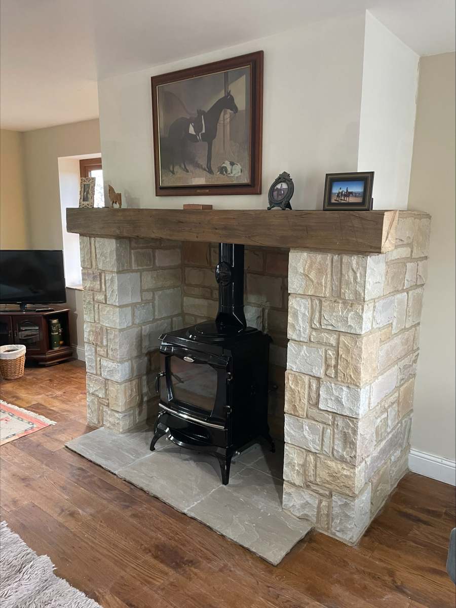 Create a stunning focal point with natural stone fireplace cladding. Our Irish limestone and sandstone thinstone brings warmth, texture, and a traditional feel to both modern and rustic interiors, expertly fitted by Deerpark Stone.